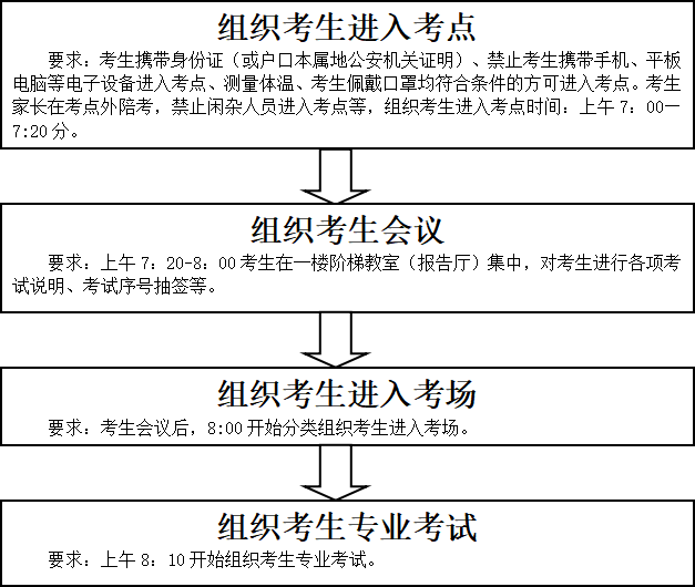 (五)考生进入考点、考场后要服从和配合考务工作人员的组织和安排,调好状态,积极应考,不喧哗,不随意闲逛和滞留校园,考完试后按要求有序撤离。