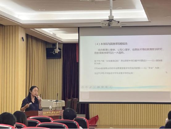 李晶晶教授毕业于华东师范大学物理与材料工程学院,获教育学博士学位,现为海南师范大学教师教育学院教授,教育硕士导师,省拔尖人才,主要从事中学物理教学研究工作。在本次讲座中,李教授从教科研论文写作的态度、论文选题应注意的方面、论文的结构、写作中常见的问题、写作中要注意的方面、文章修改问题、提高论文写作的途径,以及投稿的注意事项等方面,进行了全面、细致地指导。李教授用幽默风趣的语言,现场问答的方式,生动形象地点明教研论文写作的存在问题和要点。