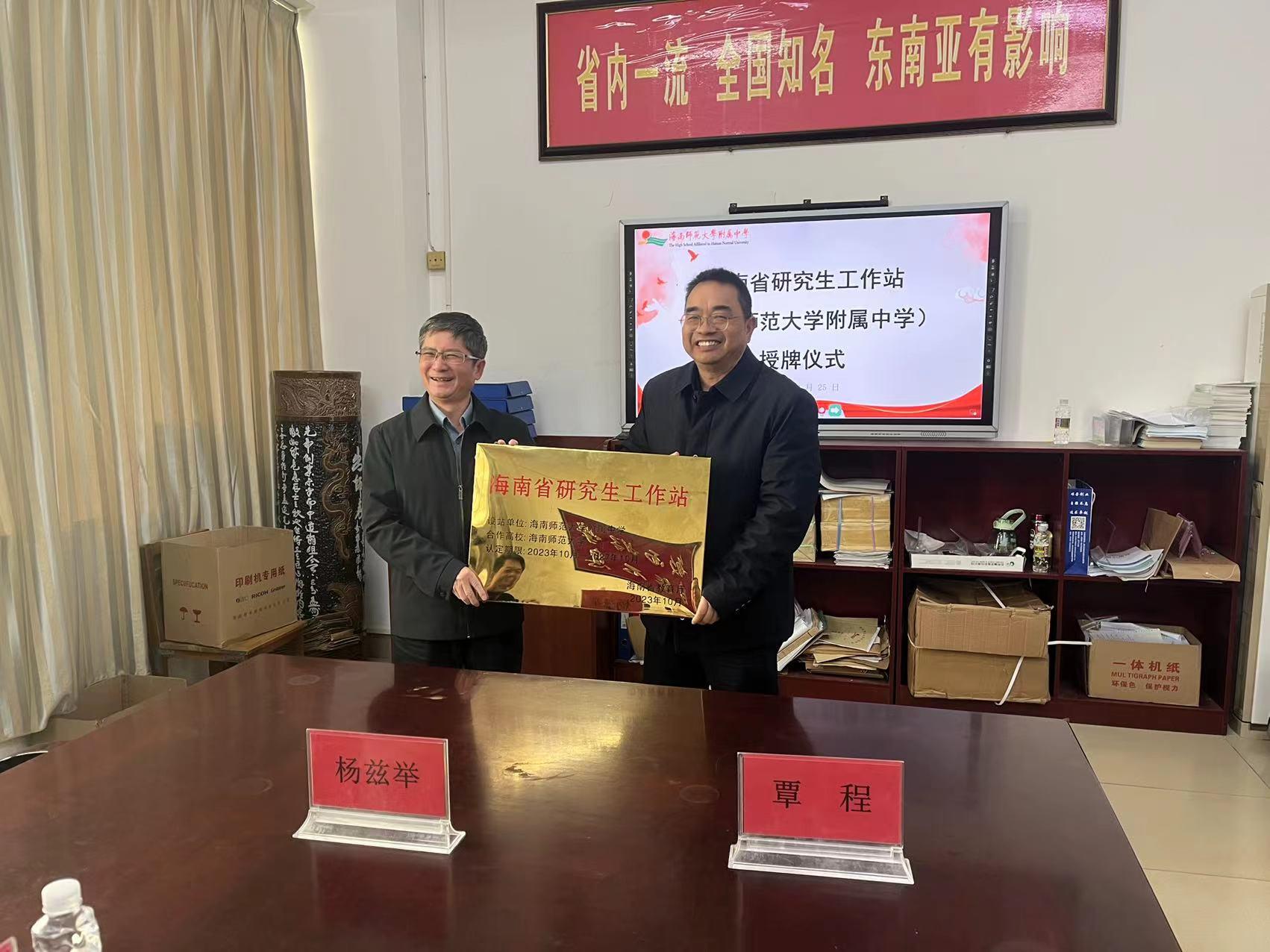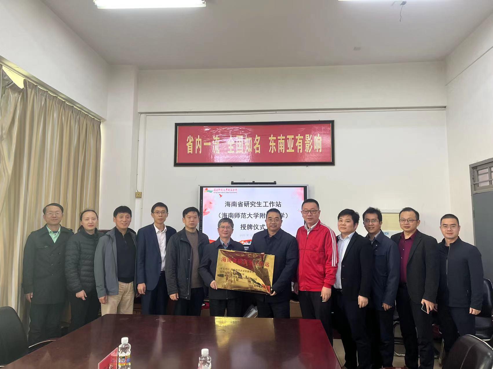 2023年12月25日,海南省研究生工作站(足彩预测 )授牌仪式在足彩预测 江东校区三楼会议室举行。