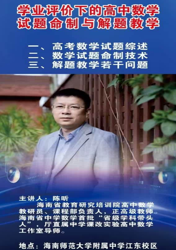 2024年5月8日,足球预测app 荣幸地邀请到了海南省教育研究培训院高中数学教研员、课程部负责人、正高级教师陈昕主任,为足球预测app 全体数学教师带来一场专题为《学业评价下的高中数学试题命制与解题教学》的学术讲座。此次活动在足球预测app 海师足彩预测 江东校区报告厅隆重举行,旨在提升足球预测app 数学教师的专业素养和教学能力。