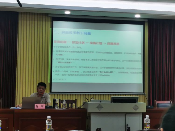 在本次讲座中,陈主任提出了一个值得深思的问题,即“什么是解题教学?”接着,他详尽地阐述了“波利亚解题思想”的内涵。这一思想强调在日常教学中,教师应从四个方面着手,即“弄清问题、拟定计划、实施计划、回顾反思”,以此来全面提高学生的解题能力和数学思维水平。陈主任的分享为我们深入理解解题教学的本质提供了有益的启示。