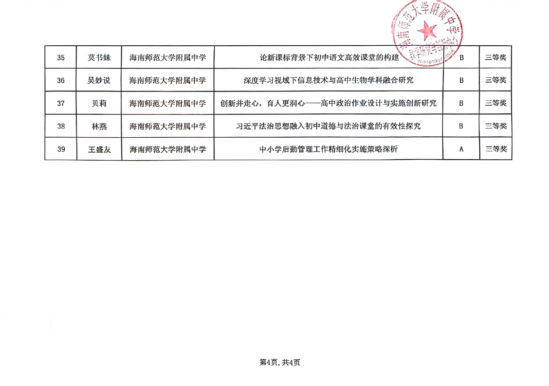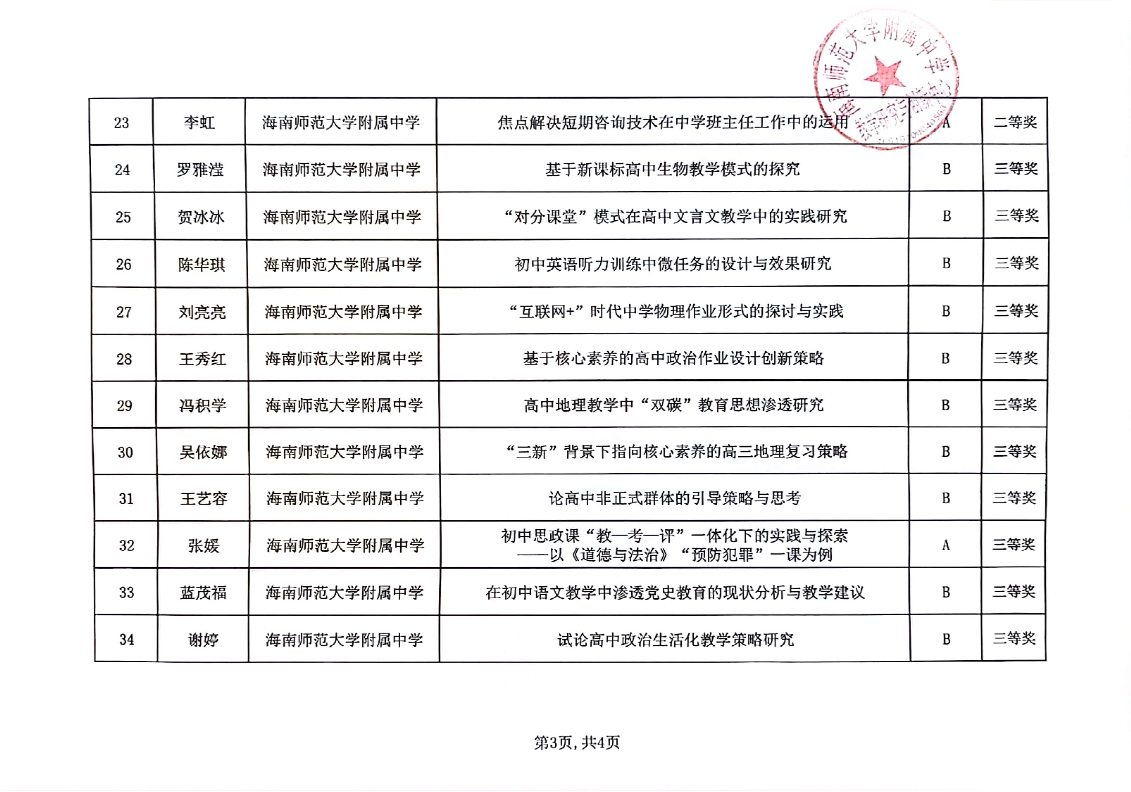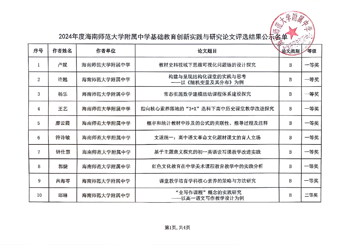 经过专家严格评审,2024年度海师足彩预测 基础教育实践与研究论文评选结果通报如下: