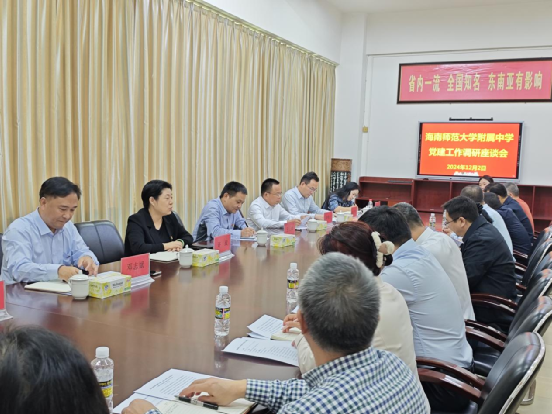 追党建华光以灼灼,逐教育华章以赫赫。12 月 2 日下午,海南师范大学党委书记许玫到足球预测app 开展党建工作调研,海南师范大学党政办公室、组织部、资产经营管理有限公司、信息网络与数据中心、基础教育办学管理部等职能部门负责人,教师教育学院领导,足球预测app 领导班子成员、各党支部书记、部门负责人、教师代表等参加调研座谈会。